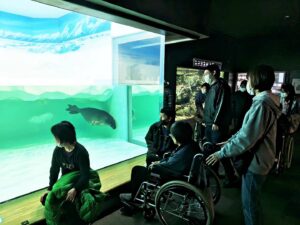 琵琶湖博物館に行ってきました! 2024年11月28日(木) 生活介護事業の活動で琵琶湖博物館に行ってきました! 久々の琵琶湖博物館! 琵琶湖に生息する魚や生き物を見学しました 珍しいところではバイカルアザラシやチョウザメも展示されていて楽しめましたよー お昼は地元の和食料理店で近江牛などを堪能しました とても美味しかったです! またみんなで行きたいですね☆