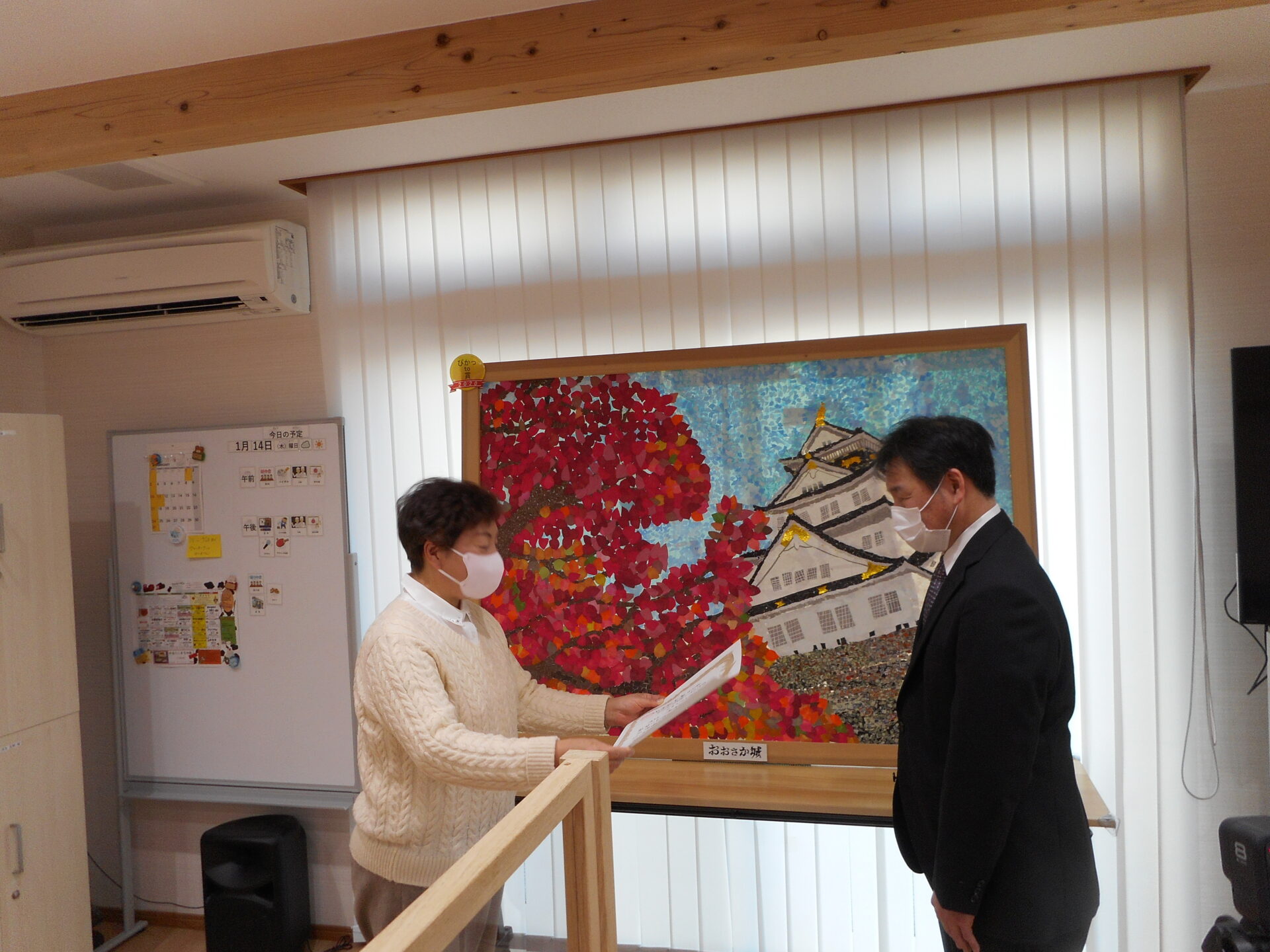 2021年01月14日 ブログ ぴかっto賞受賞式 第10回ぴかっtoアート展にてぴかっto賞を受賞された利用者Mさんのために、滋賀県手をつなぐ育成会S理事長様が本日わざわざ賞状を贈呈しに来てくださいまし... /続きを読む